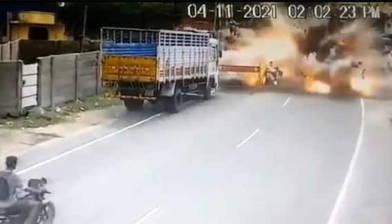 ઈન્ડિયન એક્સપ્રેસના સમાચાર અનુસાર, મૃતકની ઓળખ અરિયાનકુપ્પમના કાલેનસન (37) તરીકે થઈ છે. તેઓ તેમના 7 વર્ષના પુત્ર પ્રદીશ સાથે ફટાકડા લઈને પુડુચેરી જઈ રહ્યા હતા. આ ઘટના પુડુચેરી-વેલ્લુપુરમ બોર્ડર પર આવેલા કોટ્ટકુપ્પમ શહેરની છે. અકસ્માત નજીકના સીસીટીવીમાં કેદ થયો હતો.