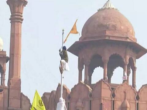 લાલ કિલા પર પહોંચ્યા આંદોલનકારી ખેડૂતોએ, ફરકાવ્યો પોતાનો ઝંડો