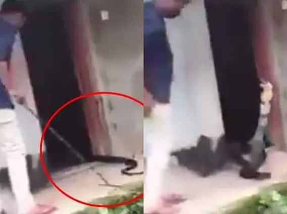 જોકે હાલમાં કિંગ કોબ્રાનો એક વીડિયો વાયરલ થયો છે. જેમાં એક વ્યક્તિ સાંપની પૂંછડી જોઈને તેને પકડવાનો પ્રયત્ન કરે છે. સાંપને પકડનાર વ્યક્તિને માત્ર પૂંછડી દેખાય છે અને તેને ખબર નથી હોતી કે આ સાંપ કિંગ કોબ્રા છે. પણ જેવો જ તે પૂંછડી પકડીને સાંપને બહાર ખેંચવા જાય છે કે તરત જ કિંગ કોબ્રા પોતાની ફેણ ફેલાવીને બહાર આવે અને સાંપને પકડવ જનાર વ્યક્તિ ડરીને તેની પૂંછડી છોડી દે છે.