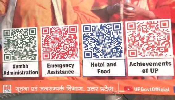 સરકારી હોર્ડિંગ્સ પર ચાર અલગ-અલગ રંગોના QR કોડ લગાવવામાં આવ્યા છે. તમારા સ્માર્ટફોનમાં સ્કેન કરતાની સાથે જ તમામ માહિતી ઉપલબ્ધ થઈ જશે. ભક્તોને વહીવટ, ઈમરજન્સી સેવાઓ, હોટલ અને ભોજન વિશે માહિતી મળશે. જો કોઈ ભક્તને કોઈ મેડિકલ ઈમરજન્સી, પોલીસની મદદ, હોટલ સંબંધિત માહિતી, અધિકારીઓને લગતી માહિતી કે અન્ય કોઈ મદદની જરૂર હોય તો આ કોડ ખૂબ જ ઉપયોગી સાબિત થશે. આ કોડ ડિજિટલ મહાકુંભને પ્રોત્સાહન આપવા માટે લાગુ કરવામાં આવ્યો છે. મહાકુંભ શહેર પ્રશાસન તરફથી આ એક નવો પ્રયોગ છે. મહાકુંભ નગરના મેળા વિસ્તારમાં દરેક જગ્યાએ સરકાર દ્વારા હોર્ડિંગ્સ લગાવવામાં આવી રહ્યા છે. મહાકુંભ નગરના ડીએમ વિજય કિરણ આનંદે જણાવ્યું કે, ભક્તો સ્માર્ટફોનથી સ્કેન કરશે તો તેમને તમામ માહિતી મળશે.