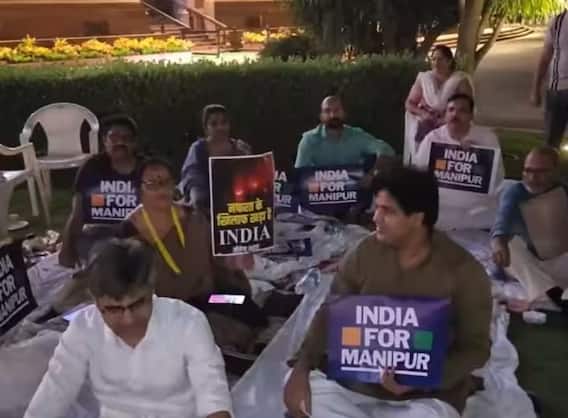સંજય સિંહના સસ્પેન્શનના વિરોધમાં વિપક્ષી ગઠબંધન ઈન્ડિયન નેશનલ ડેવલપમેન્ટલ ઈન્ક્લુઝિવ એલાયન્સ (ઈન્ડિયા)ના ઘટકોના નેતાઓ સંસદ પરિસરમાં ધરણા પર બેઠા હતા. વિપક્ષી નેતાઓએ જણાવ્યું કે આ ધરણા આખી રાત ચાલુ રહેશે અને મંગળવારે પણ થશે. આ સાથે વિપક્ષી નેતાઓ પણ મણિપુર મુદ્દે પીએમ મોદીના નિવેદનની માંગ કરી રહ્યા છે. કેન્દ્રીય ગૃહ પ્રધાન અમિત શાહે લોકસભામાં કહ્યું છે કે તેઓ ચર્ચા માટે તૈયાર છે, પરંતુ વિપક્ષ ચર્ચાથી ભાગી રહ્યું છે.