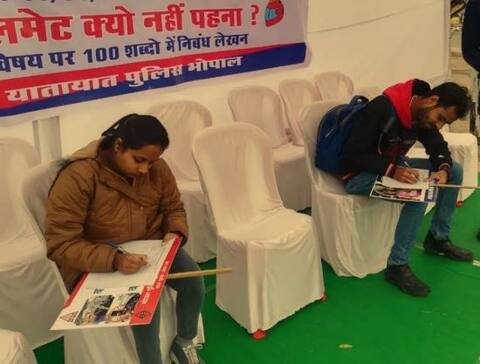 હેલ્મેટ ન પહેરનારા લોકોને ભોપાલ પોલીસે આપી નિબંધ લખવાની સજા