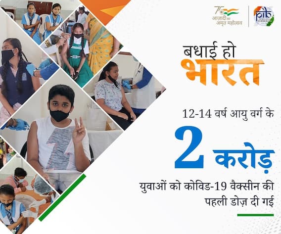 કોરોના રસીકરણ મહાઅભિયાન અંતર્ગત ભારતમાં ગત 16 માર્ચે ભારતમાં 12 થી 14 વર્ષના બાળકોનું રસીકરણ શરૂ કરવામાં આવ્યું હતું. વડાપ્રધાન મોદીએ દેશભરમાં આ રસીકરણ શરૂ કરાવ્યું હતું. માત્ર 22 દિવસ જેટલા સમયગાળામાં 12 થી 14 વર્ષના 2 કરોડથી વધુ બાળકોને કોર્બેવેક્સ વેક્સીનનો પ્રથમ ડોઝ આપી દેવામાં આવ્યો છે. કોરોના રસીકરણ મહાઅભિયાનમાં ભારતની આ એક વધુ સિદ્ધી છે.