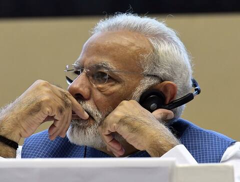 NEW DELHI, INDIA - NOVEMBER 3: Prime Minister Narendra Modi during the inauguration of World Food India Conference at Vigyan Bhavan on November 3, 2017 in New Delhi, India. (Photo by Mohd Zakir/Hindustan Times via Getty Images)