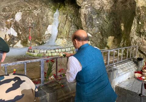 રક્ષા મંત્રી રાજનાથ સિંહે બાબા અમરનાથ મંદિરમાં કરી પૂજા અર્ચના