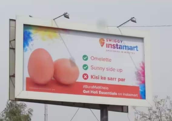Swiggy Holi Billboard Row: સ્વિગીના હોળી માટે ઈંડાની જાહેરખબરવાળા બિલબોર્ડનો લોકોના એક વર્ગે સોશિયલ મીડિયા પર વાંધો ઉઠાવ્યા બાદ સ્વિગીએ આ બોર્ડ હટાવી દીધા છે. જાહેરાતમાં કહેવામાં આવ્યું છે કે, "ઓમેલેટ - સની સાઇડ અપ - કોઈના માથા પર મારશો નહીં. ખરાબ રમશો નહીં. ઇન્સ્ટામાર્ટમાંથી હોળીની જરૂરી વસ્તુઓ મેળવો. આ મામલે સ્વિગી તરફથી કોઈ સત્તાવાર નિવેદન આવ્યું નથી.