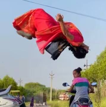હવે આવો જ એક વીડિયો ઈન્ટરનેટ પર વાયરલ થઈ રહ્યો છે, જેમાં એક છોકરી સ્કૂટી પરથી કૂદતી જોવા મળી રહી છે. યુવતીએ સાડી પહેરીને આ પરાક્રમ કરી બતાવ્યું છે. વીડિયોમાં જોઈ શકાય છે કે, યુવતીએ પહેલા આંખ પર પટ્ટી બાંધી હતી. ત્યાર બાદ તે સ્કૂટીની પાછળની સીટની કિનારે ઊભી રહી અને હવામાં જ ઉંચો કૂદકો મારે છે અને પીઠ પલ્ટી મારે છે. છોકરી પલટી મારીને સીધી જમીન પર ઊભી રહેવાનો પ્રયાસ કરી રહી હતી. જોકે, બેલેન્સ ગુમાવવાને કારણે તે નીચે પડી જાય છે. જોકે સદનસીબે કોઈ દુર્ઘટના ઘટી નહોતી.
