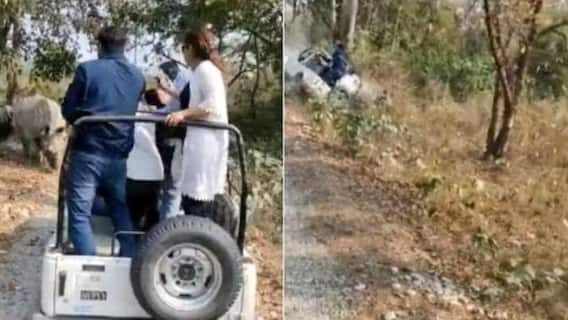 આવી સ્થિતિમાં સોશિયલ મીડિયા પર સામે આવેલા વીડિયોમાં અમે જંગલ સફારીનો આનંદ માણતા પ્રવાસીઓના વાહનો પર હુમલો કરતા બે ગેંડા જોઈ રહ્યા છીએ. જે દરમિયાન વાહનચાલક ઝડપથી વાહન હંકારે છે, તે જ સમયે તે રસ્તામાં વળાંક પર ધ્યાન આપી શકતો નથી અને રોડ પર જતી વખતે વાહન પરનો કાબૂ ગુમાવી દે છે. જેના કારણે પ્રવાસીઓની સાથે વાહન પણ પલટી જાય છે. આ દ્રશ્ય જોઈ દરેક લોકો દંગ રહી જાય છે.