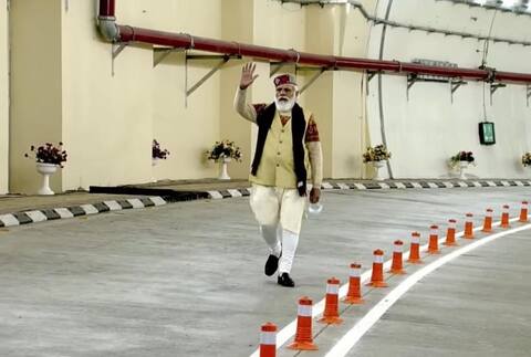 પીએમ મોદીએ અટલ ટનલનમાં પગપાળા ચાલીને અને કારમાં ઉભા રહીને હાથ હલાવતા તસવીર સામે આવી હતી.