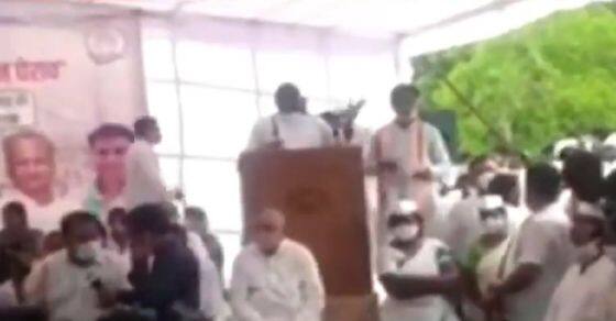 ગણેશ ઘોઘલા મંચ પરથી ભાષણ આપી રહ્યા હતા. તે સમયે પ્રદેશ કોગ્રેસ અધ્યક્ષ ગોવિંદ સિંહ ડોટાસરા, સરકારના મંત્રી, વરિષ્ઠ નેતાઓ હાજર હતા પરંતુ કોઇએ તેમને રોકવાનો પ્રયાસ કર્યો નહી પરંતુ તેમના ભાષણ પર કાર્યકરો તાળીઓ વગાડતા જોવા મળ્યા હતા.
