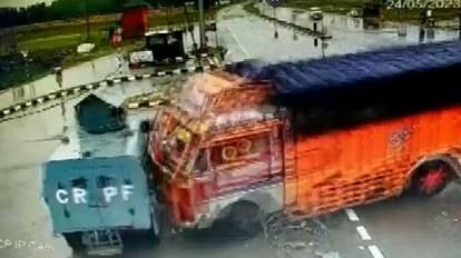 Jammu Kasmir:કાશ્મીરના પુલવામા અવંતીપોરા નેશનલ હાઈવે પર બેકાબૂ ટ્રક CRPFના વાહન સાથે ભયંકર રીતે અથડાતા ત્રણ જવાન ઘાયલ થયા છે. અકસ્માતની ઘટના સીસીટીવીમાં કેદ થતાં અકસ્માતના ભયંકર ફૂટેજ સામે આવ્યાં છે. ઘાયલ જવાનોને સારવાર માટે તાબડતોબ હોસ્પિટલ પહોંચાડવામાં આવ્યા છે.