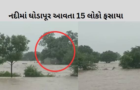 રાજકોટ: હવામાન વિભાગની આગાહી રાજકોટ જિલ્લામાં આજે વહેલી સવારથી જ ધોધમાર વરસાદ વરસી રહ્યો છે. રાજકોટ જિલ્લાના કોટડા સાંગાણીના વાદીપરા ગામે નદીમાં ઘોડાપૂર આવ્યું છે. વાદીપરા ગામે સીમ વિસ્તારમાં નદીના પાણી ફરી વળતા 15 લોકો ફસાયા છે. નદીના ધસમસતા પ્રવાહમાં લોકોએ જીવ બચાવવા વૃક્ષનો સહારો લીધો છે. વાદીપરા ગામે નદીમાં ઘોડાપૂર આવતા 15 લોકો ફસાયા છે. લોકોએ આવા ધસમસતા પ્રવાહમાં પીપરના વૃક્ષ ઉપર આશરો લીધો છે. ચારેબાજુ પાણી ફરી વળતા 15 લોકો ફસાયા છે.