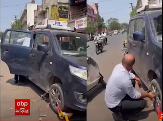Rajkot : રાજકોટ શહેરના યાજ્ઞિક રોડનો એક વિડીયો હાલ સોશિયલ મીડિયામાં વાયરલ થઇ રહ્યો છે. અહીં નો-પાર્કિંગમાં પાર્ક કરેલી એક કારને ટ્રાફિક પોલીસે નિયમ પ્રમાણે લોક કરી. ટ્રાફિક પોલીસે કારના એક ટાયર પર લોક લગાવી દીધું હતું. આ દરમિયાન કાર ચાલાક ત્યાં આવતા તેણે લોક પર લખેલા મોબાઈલ નંબર પર કોલ કર્યો હતો. રાહ જોયા બાદ પણ લોક ખોલવા કોઈ ન આવતા યુવાને ટ્રાફિકના લોકવાળું કારનું ટાયર જ કાઢી નાખ્યું અને તેના સાથે સ્પેરવ્હિલ લગાવી કારચાલક જતો રહ્યો હતો. દ્રશ્યો નજરે જોનાર લોકો પણ આ કીમિયો જોઈ ચોંકી ઉઠ્યા હતા, જુઓ આ સમગ્ર ઘટનાનો વિડીયો