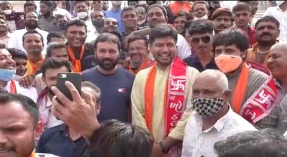 પ્રદેશ યુવા ભાજપ પ્રમુખ ધાર્મિક યાત્રાએ નીકળતા ભાજપના કાર્યકરો મોટી સંખ્યામાં જોડાયા હતા. મોટી સંખ્યામાં તમામ એકસાથે જ મંદિરમાં દર્શન કર્યા. આટલું જ નહીં મોટી સંખ્યામાં લોકોએ ટોળે વળી પ્રદેશ યુવા ભાજપ પ્રમુખ સાથે મુલાકાત પણ કરી. જયેશ રાદડિયા અને પ્રશાંત કોરોટ માસ્ક વગર કેમેરામાં કેદ થયા હતા. જ્યાં નેતાઓએ જ માસ્ક નથી પહેર્યા તો હાજર કાર્યકરો તો માસ્ક ન જ પહેરે. એક તરફ પોલીસ જો સામાન્ય જનતા નાક નીચે પણ માસ્ક હોય તો દંડ વસૂલે છે. તો આ નેતાઓ સામે પોલીસ કેમ નથી કરતી કાર્રવાઈ?.