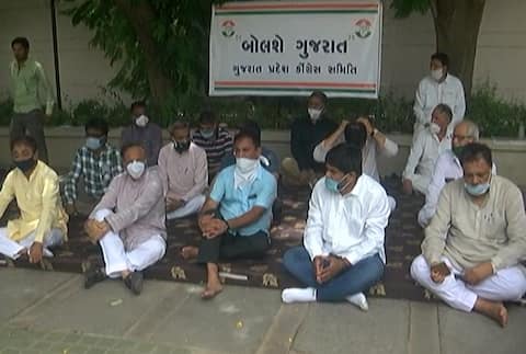 રાજકોટમાં કૉંગ્રેસના ધારાસભ્યોએ વિજબીલ અને ખાનગી શાળાઓની ફી માફી મુદ્દે કર્યા ધરણા
