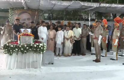 #WATCH | Rajkot | Former Gujarat CM Vijay Rupani was given a 21-gun salute. The last rites of the former CM are being performed with full state honours.