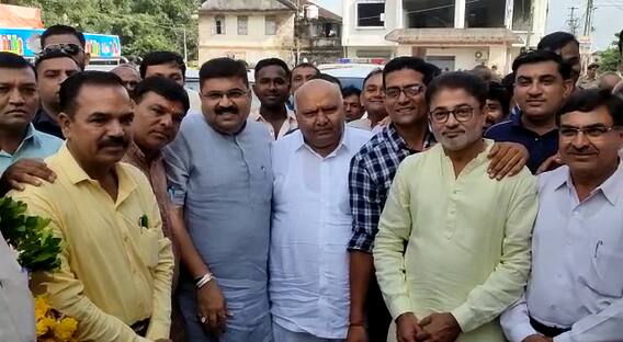 સાસંદ રમેશ ધડૂક સાથે હાથ મિલાવતા લલિત વસોયા.