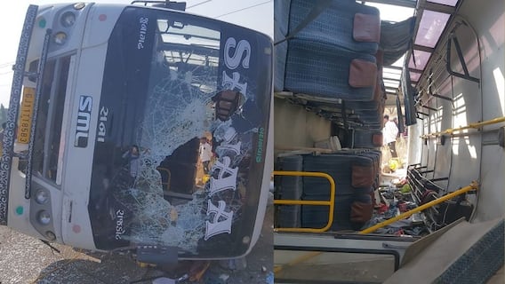 Anand: બોરસદમાં પેસેન્જર ભરેલી બસ ધડાકા સાથે ઘૂસી ગઈ ઘરમાં, જુઓ સીસીટીવીઆણંદઃ બોરસદમાં પેસેન્જર ભરેલી ખાનગી બસ મકાનમાં ધુસી ગઈ હોવાની ઘટના સામે આવી છે. સંસ્કાર નગરી સોસાયટીના રહેણાંક મકાનમા ધડાકાભેર બસ ઘુસી ગઈ હતી. આ ઘટનામાં મુસાફરોને સામાન્ય ઈજા પહોંચી હતી. મકાનની પ્રોટેક્શન વોલ તૂટી ગઈ છે. જોકે, આ દુર્ઘટનામાં મોટી જાનહાનિ ટળી છે. આ ઘટનાના સીસીટીવી પણ સામે આવ્યા છે. જેમાં બસનો અકસ્માત જોઇ શકાય છે.