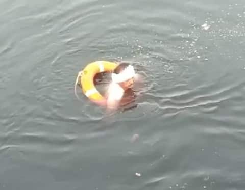 તસવીરઃ જેતપુરની ભાદર નદીમાં મૃતદેહ બહાર કાઢી રહેલા તરવૈયા.
