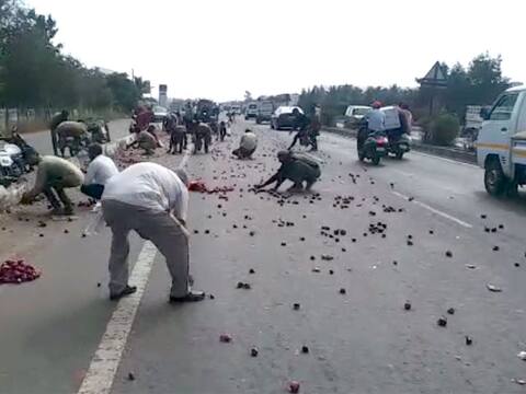 બોરી તૂટી જતાં રાજકોટ નેશનલ હાઈવે પર ભોજપરા ગામના પાટીયા પાસે ડુંગળીની રોડ પર ઢોલાઈ ગઈ. ટ્રેક્ટરમાંથી ડુંગળી હાઈવે પર ઢોળાતા લોકોએ મોંઘા ભાવની ડુંગળી લૂંટવા જીવના જોખમે દોડ્યા હતાં.