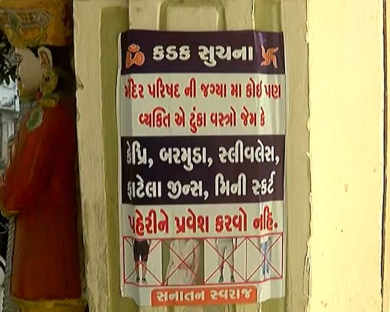 Dress Code For Entering Temple: રાજ્યના અનેક મોટા મંદિરોમાં ડ્રેસ કોડ લાગુ છે ત્યારે હવે રાજકોટ શહેરના 100થી વધારે મંદિરોમાં પ્રવેશને લઈને ડ્રેસ કોડ રાખવામાં આવ્યો છે. આ માટે મંદિરોમાં પોસ્ટર લગાવવામાં આવ્યાં છે. પોસ્ટર અનુસાર મંદિરમાં કેપ્રિ, બરમુંડા, સ્લાવલેસ, ફાટેલા જીન્સ, મિની સ્કર્ટ પહેરીને પ્રવેશ નહિ કરવાની સૂચના દર્શાવવામાં આવી છે. સનાતન સ્વરાજ નામની સંસ્થાએ આ પોસ્ટર લગાવ્યા છે.