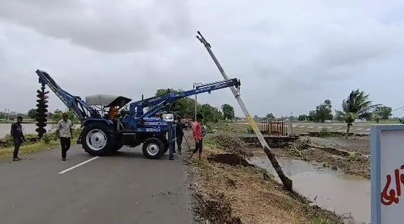 Cyclone Biparjoy: બિપરજોય વાવાજોડાની અસરને લઈ રાજકોટ જિલ્લામાં વરસાદી માહોલ જોવા મળી રહ્યો છે. રાજકોટના ઉપલેટાના ગ્રામ્ય વિસ્તારમા વરસાદ વરસ્યો છે. ઉપલેટામાં પડેલા ભારે પવન સાથેના વરસાદ બાદ ગ્રામ્ય વિસ્તારમા વીજપોલ ધરાશાયી થયો છે. ઉપલેટામાં ગઈકાલથી ભારે પવન અને વહેલી સવારે ધોધમાર વરસાદ પડ્યા બાદ શહેરના ખાખી જાળીયા રોડ પરના વીજપોલ ધરાશાયી થયા હતા.
