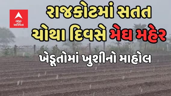 Latest Rajkot News: રાજકોટ જિલ્લામાં સતત ચોથા દિવસે (rain in Rajkot district 4th continue day) વરસાદી વાતાવરણ છે. રાજકોટ જિલ્લાના ગ્રામ્ય વિસ્તારોમાં (Rajkot rural) વરસાદી વાતાવરણ છે. રાજકોટ નજીકના ન્યારા સહિતના ગામોમાં વરસાદ છે. વાવણી લાયક વરસાદ વરસતા ખેડૂતોમાં ખુશીનો (happy farmers) માહોલ છે.