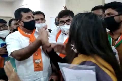 રાજકોટ: આગામી 21મી ફેબ્રુઆરીએ યોજાનારી 6 કોર્પોરેશનની ચૂંટણી માટે આજે ભાજપ દ્વારા ઉમેદવારી પત્રો ભરવામાં આવી રહ્યા છે. રાજકોટમાં પણ ભાજપના ઉમેદવારો આગેવાનો સાથે ઉમેદવારી નોંધાવવા પહોંચ્યા હતા. જોકે, રાજકોટમાં ઉમેદવારના ફોર્મ ભરવાના મામલે એનસીપીના નેતા રેશમા પટેલ અને ભાજપના નેતા ઉદય કાનગડ વચ્ચે ઉગ્ર બોલાચાલી થઈ ગઈ હતી. બબાલ ન અટકતા પોલીસ બોબાવવી પડી હતી. મહિલા પોલીસ એનસીપીના નેતા રેશ્મા પટેલને હાથ પકડીને બહાર લઈ ગઈ હતી. રેશ્મા પટેલે આ અંગે આક્ષેપ લગાવ્યો હતો કે, હું મારી પાર્ટીની અધિકૃત વ્યક્તિ છું. મારે મેન્ડેટને લઈને અધિકારી સાથે બે મિનિટ વાત કરવી હતી. એમણે મારા કેન્ડિડેટને બહાર મોકલ્યા અને ભારતીય જનતા પાર્ટીના ઉમેદવારને ફોર્મ ભરાવા દેવામાં આવે છે. એનસીપી વિરોધપક્ષ છે, તો એને સત્તાપક્ષ દ્વારા થતી ગુંડાશાહી સહન કરવાની. તેમણે ભાજપના નેતાએ તેમને તુંકારો આપ્યો હોવાનું પણ જણાવ્યું હતું. તેમજ ગાળાગાળી કરી હોવાનો આક્ષેપ લગાવ્યો હતો. તેમજ સત્તાનો દૂરુપયોગ કરી મને ધક્કામૂકી કરીને બહાર ખસેડવાનો પ્રયાસ કર્યો છે. પરંતુ પ્રાંત અધિકારી મોઢામાં મગ ભરીને બેઠા હતા. ભાજપના નેતા ઉદય કાનગડે જણાવ્યું હતું કે, એક પ્રોસિઝર હોય છે કે, ચાર ઉમેદવાર અને ચાર ટેકેદાર એમની જ્યારે પ્રોસિઝર હાલતી હોય ત્યારે બીજા કોઈ લોકોએ વચ્ચે આવી અને જે કંઇ પ્રક્રિયા ચાલતી હોય એમાં ડિસ્ટર્બ ન કરવું જોઇએ. રેશ્માબેન પટેલ એની પોતાની આદત પ્રમાણે સાત-આઠ લોકોને લઈ સીધા અંદર ઘૂસી ગયા અને મેન્ડેટને લઈ અધિકારી સાથે ઝઘડો કરવા લાગ્યા. એટલે અમે કીધું કે, અત્યારે અમારી જે કંઈ પ્રોસિઝર ચાલું છે કારણ કે મેન્ડેટ તો સાંજે આપતા હોય છે અત્યારે ફોર્મ ભરવાની પ્રોસિઝર ચાલે છે, તો એમાં તમે ડિસ્ટર્બ ન કરો. એમણે એની આદત પ્રમાણે મીડિયાને જોઇ અને રાજકોટમાં પોતાની હાજરી પુરાવા, એની આ આદત રહી છે. ખોટા આવા નાટક કરી, ત્રાટક કરી અને લાઇમ લાઇટમાં રહેવા માટેના આ હવાતિયા છે. બીજું કાંઇ નથી. અહીં એનસીપીનું કોઈ અસ્તિત્વ નથી. લોકશાહીમાં એને પણ અધિકાર છે, પણ પ્રોસિઝર ચાલતી હોય ત્યારે વચ્ચે ડિસ્ટર્બ કરી અધિકારીઓને દબાવી, દાદાગીરી કરી અને મીડિયા સામે હોય ત્યારે એને માતાજી આવતા હોય તેમ ધૂણવા મંડે અને આવા ખોટા ત્રાટક કરીને લાઇમ લાઇટમાં રહેવાના પ્રયાસ છે.