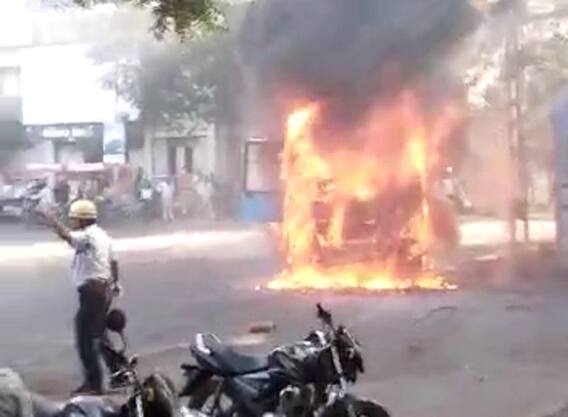 રાજકોટઃ રાજકોટના ભક્તિનગર સર્કલ નજીક સીટી બસમાં અગમ્ય કારણોસર આગ લાગી ગચીય ફાયર બ્રિગેડ દ્વારા આગ પર કાબૂ લેવામા આવી. કોઈ જાનહાનીના સમાચાર નહીં. બસ ઉભી હતી અને ડ્રાઈવરે જેવો સેલ્ફ માર્યો તો એન્જિનના ભાગમાંથી તાત્કાલિક બસ સળગવા માંડી. આસપાસમાં પડેલા બે બાઇક પણ સળગીને ખાક થઈ ગયા. ફાયર બ્રિગેડ દ્વારા તાત્કાલિક બૂજાવવામાં આવી. ડ્રાઇવરે કહ્યું તાત્કાલિક અમે નીચે ઉતરી ગયા અને બે મુસાફરો પણ નીચે ઉતારી દેવામાં આવ્યા. બસ પાસે આવેલો વીજ પોલ અને પીપળાનું ઝાડ પણ બળીને ખાખ થઇ ગયું.. આસપાસના વેપારીઓએ કહ્યું આગ ખૂબ જ ભયાનક હતી. ગણતરીની સેકન્ડોમાં આખી બસમાં આગ લાગી ગઈ.