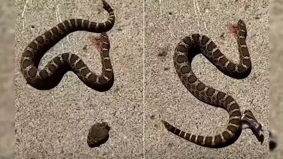 Decapitated Head of Snake Bites its Own Body: વીડિયોમાં સાપ સતત તડપતો જોવા મળી રહ્યો છે. તેનું કપાયેલું માથું તેના શરીરની નજીક જાય છે અને પછી જે થાય છે તે ખૂબ જ આશ્ચર્યજનક છે. જુઓ વીડિયો