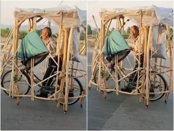 વાયરલ થઈ રહેલા વીડિયોમાં આપણે જોઈ શકીએ છીએ કે એક વૃદ્ધ માણસ આકરા તડકામાં રસ્તા પર સાઈકલ ચલાવતો હતો. અત્યારે ધોમધખતા તાપમાં સાયકલ ચલાવવી ખૂબ જ થકવી નાખે છે. આવી સ્થિતિમાં વ્યક્તિએ જુગાડ લગાવીને સાયકલની ફરતે લાકડાની ફ્રેમ બનાવી છે. જેની નીચે નાના ટાયર લગાવવામાં આવ્યા છે. જેના કારણે વ્યક્તિને સાઇકલ ચલાવતી વખતે કોઇપણ પ્રકારની સમસ્યાનો સામનો કરવો નહીં પડે.