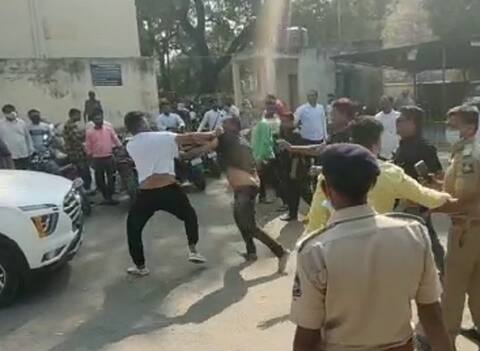 ગોધરાઃ પંચમહાલ જિલ્લાની ગોધરા નગરપાલિકાની ચૂંટણીમાં ઉમેદવારી પરત ખેંચવાના દિવસે છુટાહાથની મારામારી થઈ હતી. પાલિકાના વોર્ડ નંબર 5માં કોંગ્રેસના ઉમેદવારે પોતાનું ઉમેદવારી પત્ર પરત ખેંચતા મારામારી થઈ હતી. વોર્ડ 5 ના કોંગ્રેસના ઉમેદવારે પોતાનું ઉમેદવારી પત્ર પરત ખેંચતા વોર્ડ 4ના કોંગ્રેસના ઉમેદવારે જ બબાલ કરી હતી. મારામારીની ઘટનામાં ગોધરા શહેર ભાજપ પૂર્વ પ્રમુખ મહેશ હરૂમલાણી વચ્ચે આવતા મામલો બીચકયો હતો. ગોધરા કેલકટર કચેરી કમ્પાઉન્ડમાં જ થઈ છુટા હાથની મારામારી થઈ હતી.