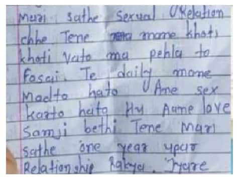 હાલોલઃ હાલોલના કોપરેજ ગામની 20 વર્ષીય કોલેજિયન યુવતીને પોતાના જ ગામના યુવક સાથે શારીરિક સંબંધ બંધાયો હતો. બંને રોજ શરીર સુખ માણતાં હતાં પણ પ્રેમીએ તેનો ઉપભોગ કરીને લગ્નની ના પાડી દેતાં યુવતીએ આપઘાત કરી લીધો છે. યુવતીએ પોતાની સુસાઈડ નોટમાં ઘણા ચોંકાવનારા આક્ષેપ કર્યા છે. કોલેજીયન ગર્લની સુસાઈડ નોટ અક્ષરશઃ નીચે પ્રમાણે છે. હેલ્લો, આઈ એમ .............. આજે મારી લાઈફનો લાસ્ટ ડે છે. હું સુસાઈડ કરવા જઈ રહી છું. હું કોપરેજ ગામથી બિલોંગ કરું છું. મારું સુસાઈડ કરવાનું રિઝન રિલેશનશીપ છે. એક્ચ્યુલી તેને મારી સાથે સેક્સુઅલ રિલેશન છે. તેને મને ખોટી ખોટી વાતોમાં પહેલા તો ફસાઈ. તે ડેઈલી મને મળતો હતો અને સેક્સ કરતો હતો. હું આને લવ સમજી બેઠી. તેને મારી સાથે વન યર ઉપર રિલેશનશીપ રાખ્યા. જ્યારે તો તેને કહ્યું કે તારે જે કરવું હોય તે કરી શકે છે એમ અને ગામમા તેને આ વાત કરી કે હું તેની સાથે મેરેજ માટે બ્લેકમેલ કરુ છું. આવી રીતે અને બીજું કે હું તેના પૈસા જોઈને તેની લાઈફમાં આયેલી આ વાત કરી તેના કારણે હું ગામમાં ફેસ દેખાડવા લાયક નથી રહી તો હું કામ કરું છું. હાલોલઃ ‘એ મને ડેઈલી મળતો હતો ને સેક્સ કરતો હતો, તેણે અનલિમિટેડ સેક્સ કર્યો છે, હું આને લવ સમજી બેઠી પણ.....’ તેની લાઈફમાં બીજી ગર્લ્સ આઈ તો મને ઈગ્નોર કરવા લાગ્યો. મારું વોટ્સએપ નંબર બ્લોક કરી દીધું. તેના મારા પહેલા પણ બવ ગર્લ્સ હતી. લાઈફમાં મને ખબર નહોતી કે તે ગર્લ્સનો યુઝ કરીને છોડી દે છે. જ્યારે મે તેને કીધું તો તે બહાના બનાવા લાગ્યો તો મારી પાસે ફોટોઝ હતા તો અપલોડ કર્યા હતા. તો તેને જ પણ ફોટો હાતા મારા ફોનમાં તેને ડિલિટ કરવા માટે તો મને મળ્યો હતો. 22 જાન્યુઆરી રિસ્ટાર્ટ કરીને છોડી દીધી રસ્તામાં અને તેને મારો બહુ જ યુઝ કર્યો હતો એટલા માટે હું છોડી શકી નહીં. હાલોલઃ ‘એ મને ડેઈલી મળતો હતો ને સેક્સ કરતો હતો, તેણે અનલિમિટેડ સેક્સ કર્યો છે, હું આને લવ સમજી બેઠી પણ.....’ મેં ફર્સ્ટ ટાઈમ કોઈના પર ટ્રસ્ટ કર્યો. તેના માટે મારું કેરીયર, ફ્યુચર મારા પપ્પાના ડ્રીમ, ટ્રસ્ટ બધું જ ઓવર કરી નાખ્યું હતું. એટલા માટે મેં તેના અને મારા ફોટોઝ અપલોડ કરી દીધા બિકોઝ તેણે મારો યુઝ પણ કર્યો અને ગામમાં મારી જ ગાંડી વાત કરતો હતો. મને ખબર નહતી. તેને મારા જ માટે મને સેકન્ડમાં મરવા માટે છોડી દીધી. તેને ખબર છે હું આ કામ કરવાની છું. હાલોલઃ ‘એ મને ડેઈલી મળતો હતો ને સેક્સ કરતો હતો, તેણે અનલિમિટેડ સેક્સ કર્યો છે, હું આને લવ સમજી બેઠી પણ.....’ મે ગામમાં તો શું મારી ફેમિલીને ફેસ દેખાડવા નથી રહી બિકોઝ પપ્પાને પ્રોમિસ કર્યું હતું કે મારી ઈમેજ ખરાબ નઈ થવા દઉં. તમને કોઈ કમ્પલેન નઈ આવે. બટ હુ સ્ટડી માટે પૂના ગઈ હતી. તે બોયઝ માટે હું ઘરે આઈ ગઈ, બટ તે મારો યુઝ કરતો હતો. મને ખબર નહતી. હુ મારી ફેમિલીની માફી માગુ છું કે તમારી ઈમે