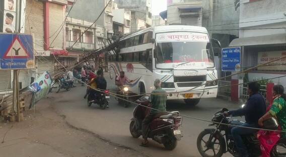 ચાલુ લાઇનનો વિજપોલ બસ પર ધડાકે ભેર પડતા ભાગદોડ મચી ગઈ હતી. બસમા સવાર મુસાફરોને બહાર કાઢયા. ઘટનાને લઈ વિસ્તારનો વીજપુરવઠો ખોરવાયો. Mgvclના કર્મચારી ઘટના સ્થળે દોડી આવ્યા હતા.