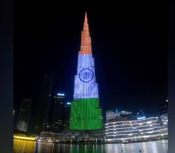 India Independence Day: ભારતે 15 ઓગસ્ટે તેનો 77મો સ્વતંત્રતા દિવસ ઉજવ્યો હતો. જેના માટે દેશભરમાં વિવિધ કાર્યક્રમોનું આયોજન કરવામાં આવ્યું અને દરેક જગ્યાએ તિરંગો ફરકાવવામાં આવ્યો હતો. અવસર પર વિશ્વની સૌથી ઊંચી ઇમારત બુર્જ ખલીફા પર પણ ભારતનો રંગ જોવા મળ્યો હતો. યુએઈમાં બુર્જ ખલીફાના પ્રદર્શનમાં તિરંગો અને મહાત્મા ગાંધી જોવા મળ્યા હતા. આ દરમિયાન આ ઈમારત પર 'હર ઘર તિરંગા અભિયાન' અને ‘જય હિંદ’નું લખાણ પણ જોવા મળ્યું હતું.