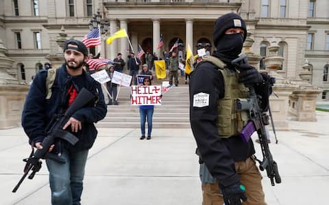 મિશિગનની રાજધાની સેન્સિંગમાં કેટલાક પ્રદર્શનકારીઓ હાથમાં રાઇફલ અને ગન લઇને બહાર નીકળ્યા હતા. કેટલાક કારોમાં બેઠા હતા તો કેટલાકે ટ્રાફિક જામ કરી દીધો હતો