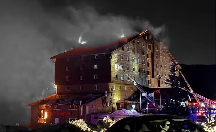 Turkey ski resort fire:તુર્કીમાં એક સ્કી રિસોર્ટ હોટલમાં મંગળવારે લાગેલી આગમાં ઓછામાં ઓછા 76 લોકોના મોત થયા છે અને 50થી વધુ લોકો ઘાયલ થયા છે. બોલુ પ્રાંતના કારતલકાયા સ્કી રિસોર્ટ સ્થિત હોટલમાં મધરાતે  આગ ફાટી નીકળી હતી.  બિલ્ડિંગના એક માળ પર રેસ્ટોરન્ટ ચાલે છે. રેસ્ટોરન્ટમાં આગ ફાટી નીકળી હતી. સ્થાનિક અધિકારીઓએ જણાવ્યું હતું કે, ઘણા લોકોએ ગભરાટમાં હોટલની ઇમારત પરથી કૂદકો માર્યો હતો, જેના પરિણામે તેમના મૃત્યુ થયા હતા.