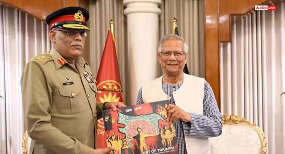 Mohammad Yunus meets Pakistan's top general: પાકિસ્તાનના ટોચના જનરલ સાહિર શમશાદ મિર્ઝાએ ઢાકાની મુલાકાત દરમિયાન બાંગ્લાદેશના વચગાળાના સરકારના વડા મોહમ્મદ યુનુસ સાથે મુલાકાત કરી હતી. મુલાકાત દરમિયાન, બંને નેતાઓએ પાકિસ્તાન અને બાંગ્લાદેશ વચ્ચે સહયોગ અને પરસ્પર સહાય વધારવાની જરૂરિયાત પર ભાર મૂક્યો હતો. મુલાકાત દરમિયાન, મોહમ્મદ યુનુસે જનરલ મિર્ઝાને બાંગ્લાદેશનો નકશો દર્શાવતો ફોટોગ્રાફ રજૂ કર્યો હતો, જેમાં આસામ અને ભારતના ઉત્તરપૂર્વીય રાજ્યોનો સમાવેશ થાય છે.