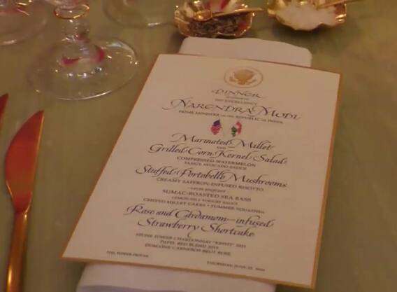 PM Modi in US Visit: વડા પ્રધાન નરેન્દ્ર મોદી આજે (22 જૂન) વ્હાઇટ હાઉસમાં આયોજિત રાત્રિભોજનમાં હાજરી આપવા જઈ રહ્યા છે, જે યુએસ પ્રમુખ જો બિડેન અને પ્રથમ મહિલા જીલ બિડેન દ્વારા હોસ્ટ કરવામાં આવશે. સ્ટેટ ડિનર પહેલાં વ્હાઇટ હાઉસમાં મીડિયા પ્રિવ્યૂમાં પીરસવામાં આવતી વાનગીઓ પણ બતાવવામાં આવી છે. મેરીનેટેડ મિલેટ અને ગ્રિલ્ડ કોર્ન કર્નલ સલાડ મેનુમાં અન્ય વાનગીઓમાં સામેલ છે.