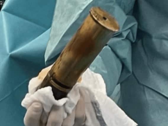પ્રથમ વિશ્વયુદ્ધનો આ બોમ્બ 1900ના દાયકાની શરૂઆતમાં ફ્રેન્ચ સૈનિકો દ્વારા ઉપયોગમાં લેવાતા કલેક્શનનો એક ભાગ હતો. અહેવાલો અનુંસર વ્યક્તિ આ બોમ્બનો ઉપયોગ શરીર સુખ (ગુદા મૈથુન) માટે કરી રહ્યો હતો ત્યારે તે તેની અંદર ફસાઈ ગયો હતો. આવો જ એક કિસ્સો ગયા વર્ષે બ્રિટનમાં સામે આવ્યો હતો. કંઈક આવી જ સમસ્યા સાથે એક વ્યક્તિ હોસ્પિટલ પહોંચ્યો હતો. તેના શરીરમાં ફસાયેલો બોમ્બ બીજા વિશ્વયુદ્ધનો હતો.