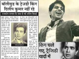 દિલ્હીથી પ્રકાશિત થનારા નવોદય ટાઇમ્સે દિલીપ કુમારના નિધન વિશે બતાવ્યુ. તેમને સમાચારને આ શિર્ષક આપ્યુ છે- સાહેબ ને કહા, એ મેરે દિલ કહી ઔર ચલ....