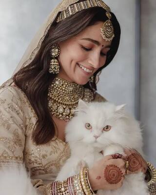 નવી દુલ્હન આલિયા ભટ્ટ ફરી એકવાર તેના લગ્નની નવી તસવીરો શેર કરીને દિલ જીતી રહી છે. આલિયાને તેની પાલતુ બિલાડી સાથે હસતી જોઈ શકાય છે જે લગ્નમાં 'કેટ ઓફ ઓનર' હતી.