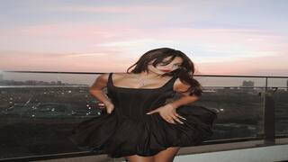 બ્લેક લૂકમાં રાધિકા સેઠ કેમેરાની સામે ખૂબ જ ગ્લેમરસ અંદાજમાં પોઝ આપતી જોવા મળી રહી છે.
