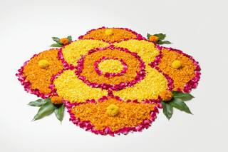 Flower Rangoli: રંગોળી બનાવવાનો સમય ન હોય તો ફટાફટ ફૂલોથી બનાવો આવી સુંદર રંગોળી
