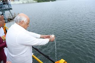 મુખ્યમંત્રી ભૂપેન્દ્ર પટેલે શારદીય નવરાત્રીના નવમા પવિત્ર દિવસે એકતા નગર ખાતે પહોંચીને, વૈદિક મંત્રોચ્ચાર સાથે લોકમાતા નર્મદાના પાવન જળનું પૂજન કર્યું અને નાળિયેર-ચૂંદડી અર્પણ કરીને વધામણાં કર્યા હતા. પૂર્ણ જળસપાટીને કારણે ડેમના પાંચ દરવાજા ખોલીને પાણી છોડવામાં આવ્યું હતું.