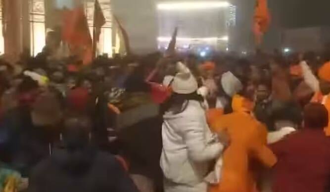 પ્રાણ પ્રતિષ્ઠાના બીજા દિવસે રામ મંદિરમાં દર્શન માટે ભક્તોની ભારે ભીડ જામી છે. જેના કારણે પ્રશાસને રામ મંદિરના પ્રવેશદ્વાર પર ભક્તોને રોકી દીધા છે. ગર્ભગૃહની અંદર ભક્તોની ભારે ભીડને કારણે લોકોને રોકવાનો નિર્ણય લેવામાં આવ્યો છે.