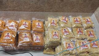 ફુડ પેકેટ પર રિવાબાએ પોતાની તસવીરો છપાવી પ્રચાર કર્યો છે.