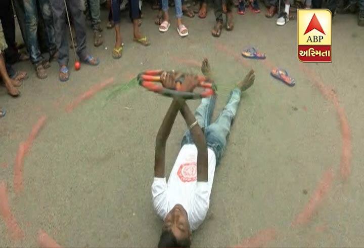 અમદાવાદ રથયાત્રાઃ યુવાને દાંતથી ઊંચકી સાયકલ, બીજા કરતબ જોઇ થશો દંગ