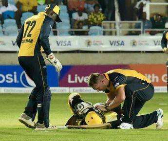 માથા પર બોલ વાગતા જમીન પર ઢળી પડ્યો રસેલ, સ્ટ્રેચર પર મેદાન બહાર લઇ જવાયો