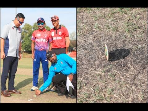 નવી દિલ્હીઃ એશિયન ક્રિકેટ કાઉન્સિલ ઇસ્ટર્ન રીઝન 2019માં નેપાળ અને હોંગકોંગની વચ્ચે મહત્ત્વપૂર્ણ મેચ શરૂ થતા પહેલા એક રસપ્રદ ઘટના ઘટી જેના કારણે થોડા સમય માટે ત્યાં હાજર લોકો પણ હસવું રોકી શક્યા ન હતા. મેચની શરૂઆતમાં ટોસ માટે જ્યારે સિક્કો ઉછાળવામાં આવ્યો ત્યારે તે જમીન પર ઉંધો કે ચત્તો પડવાને બદલે જમીન પર ઉભો જ રહી ગયો. આ જોઈને મેચ અધિકારી અને બન્ને ટીમોના કેપ્ટન આશ્ચર્યથી જોવા લાગ્યા અને હસવા લાગ્યા હતા. ત્યાર બાદ રેફરીએ તે પછી ફરીથી ટોસ ઉછાળવા કહ્યું. તે પછી નેપાળે ટોસ જીત્યો અને પહેલા ફિલ્ડિંગ કરવાનો નિર્ણય કર્યો. નેપાળે હોંગકોંગને પહેલા બેટિંગનું આમંત્રણ આપ્યું હતું. હોંગકોંગની ટીમે નેપાળ માટે 96 રનોનો ટાર્ગેટ મૂક્યો. આ મુકાબલો કિનરારા ઓવલ, મલેશિયામાં રમાયો હતો. હોંગકોંગની ટીમ 43.1 ઓવરમાં 95 રન પર ઓલઆઉટ થઈ ગઈ. નેપાળે ફાઈનલમાં 16.1 ઓવરમાં 96 રન બનાવી ટૂર્નામેન્ટ જીતી.